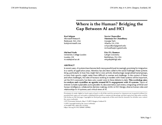 | Title: | Where is the human? Bridging the gap between AI and HCI |