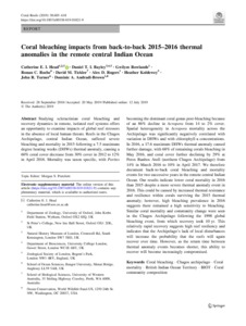 Title: | Coral bleaching impacts from back-to-back 2015–2016 thermal anomalies in the remote central Indian Ocean |