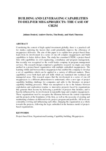 Title: | Building and leveraging capabilities to deliver megaprojects: The case of CH2M |