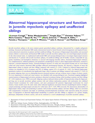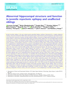 Abnormal hippocampal structure and function in juvenile myoclonic epilepsy and unaffected siblings.