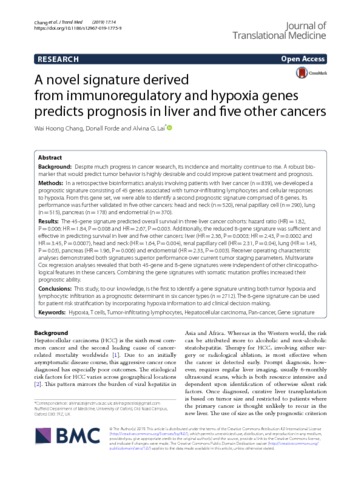 A novel signature derived from immunoregulatory and hypoxia genes predicts prognosis in liver and five other cancers.pdf - Published Version Download (1MB) | Preview |