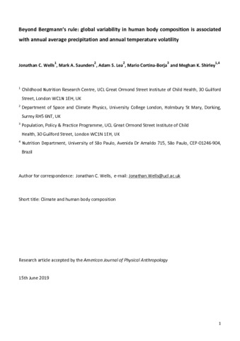 Beyond Bergmann's rule: Global variability in human body composition is associated with annual average precipitation and annual temperature volatility.