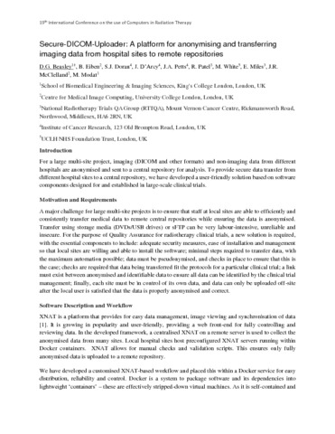 | Title: | Secure-DICOM-Uploader: A platform for anonymising and transferring imaging data from hospital sites to remote repositories |