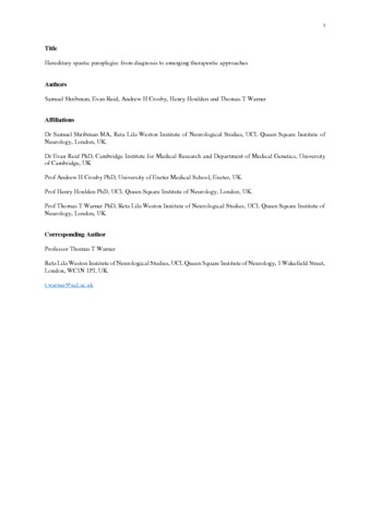 Hereditary spastic paraplegia: from diagnosis to emerging therapeutic approaches.