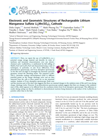 | Title: | Electronic and Geometric Structures of Rechargeable Lithium Manganese Sulfate Li2Mn(SO4)2 Cathode |