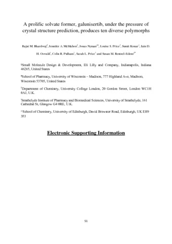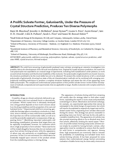 | Title: | A Prolific Solvate Former, Galunisertib, under the Pressure of Crystal Structure Prediction, Produces Ten Diverse Polymorphs |