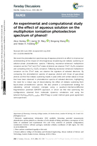 Title: | An experimental and computational study of the effect of aqueous solution on the multiphoton ionisation photoelectron spectrum of phenol |