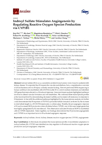 | Title: | Indoxyl Sulfate Stimulates Angiogenesis by Regulating Reactive Oxygen Species Production via CYP1B1 |