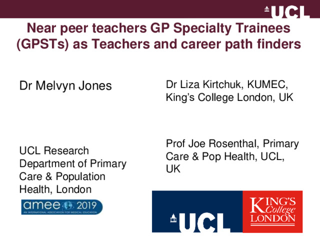 Title: | Near peer teachers GP Specialty Trainees (GPSTs) as teachers and career pathfinder |