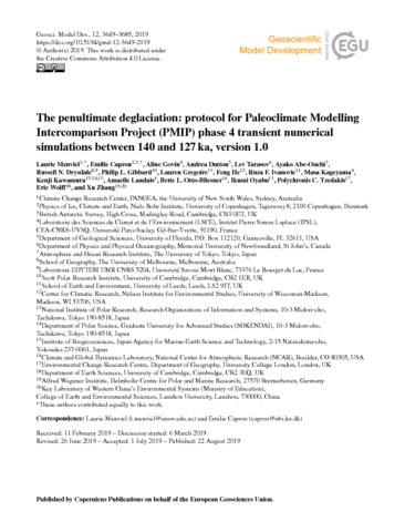Title: | The penultimate deglaciation: protocol for Paleoclimate Modelling Intercomparison Project (PMIP) phase 4 transient numerical simulations between 140 and 127 ka, version 1.0 |