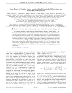 Upper Bound of Neutrino Masses from Combined Cosmological Observations and Particle Physics Experiments.