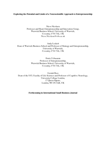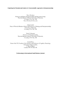 Title: | Exploring the potential and limits of a neuroscientific approach to entrepreneurship |