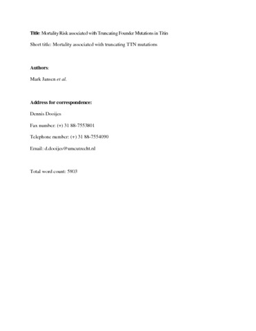 Title: | Mortality Risk Associated With Truncating Founder Mutations in Titin |
