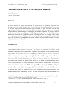 My essay explores the impact the blockade of Leningrad had on childhood experience and development. I argue that the blockade had a profound effect on the mental and physical development of children. Many children were forced to grow up ahead of their years and take on adult responsibilities. Family roles were reversed as children worked in order to support their family and became caregivers for their parents. In other words, children were thrust into the unknown world of adulthood ahead of their time, skipping a vital developmental stage. Starvation affected the physical development of children by delaying puberty and stunting growth. For my research, I relied heavily on the diaries and memoirs of children who lived through the siege of Leningrad. In total I used 26 diaries and ten memoirs, as well as a large number of secondary sources. Diaries provide an interesting and personal take on the blockade.