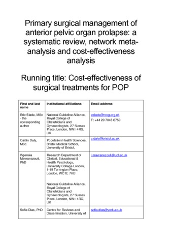 Primary surgical management of anterior pelvic organ prolapse: a systematic review, network meta-analysis and cost-effectiveness analysis.