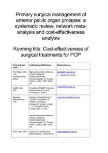 Title: | Primary surgical management of anterior pelvic organ prolapse: a systematic review, network meta-analysis and cost-effectiveness analysis |