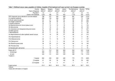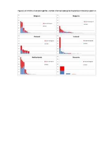 Background: It is generally agreed to centralise treatment of childhood cancers (CCs). We analysed (1) the degree of centralisation of CCs in European countries and 2) the relations between centralisation and survival. / Patients and methods: The analysis comprised 4415 CCs, diagnosed between 2000 and 2007 and followed up to the end of 2013, from Belgium, Bulgaria, Finland, Ireland, the Netherlands and Slovenia. All these countries had national population-based cancer registries and were able to provide information on diagnosis, treatment, treatment hospitals, and survival. Each case was then classified according to whether the patient was treated in a high- or a low-volume hospital among those providing CC treatment. A Cox proportional hazard model was used to calculate the relation between volume category and five-year survival, adjusting by age, sex and diagnostic group. / Results: The number of hospitals providing treatment for CCs ranged from six (Slovenia) to slightly more than 40 (the Netherlands and Belgium). We identified a single higher volume hospital in Ireland and in Slovenia, treating 80% and 97% of cases, respectively, and three to five major hospitals in the other countries, treating between 65% and 93% of cases. Outcome was significantly better when primary treatment was given in high-volume hospitals compared to low-volume hospitals for central nervous system tumours (relative risk [RR] = 0.71), haematologic tumours (RR = 0.74) and for all CC combined (RR = 0.83). / Conclusion: Treatment centralisation is associated with survival benefits and should be further strengthened in these countries. New plans for centralisation should include ongoing evaluation.