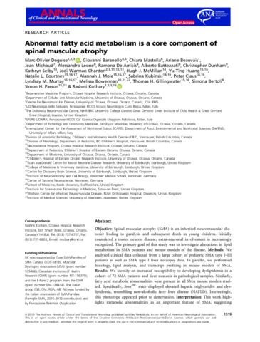 Baranello_Abnormal fatty acid metabolism is a core component of spinal muscular atrophy_VoR.pdf - Published Version Download (8MB) | Preview |