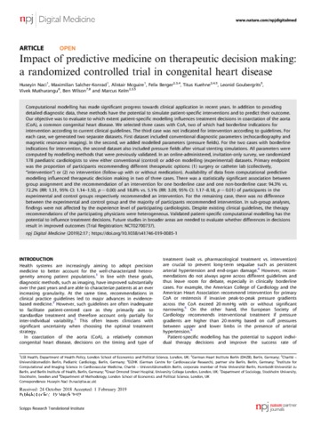 Title: | Impact of predictive medicine on therapeutic decision making: a randomized controlled trial in congenital heart disease |