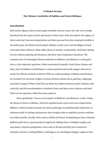 Title: | A distant dream: Balthus, Henri Michaux, and the Chinese aesthetic tradition |