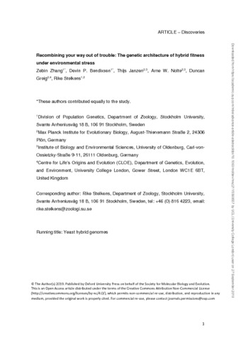 Title: | Recombining your way out of trouble: The genetic architecture of hybrid fitness under environmental stress |