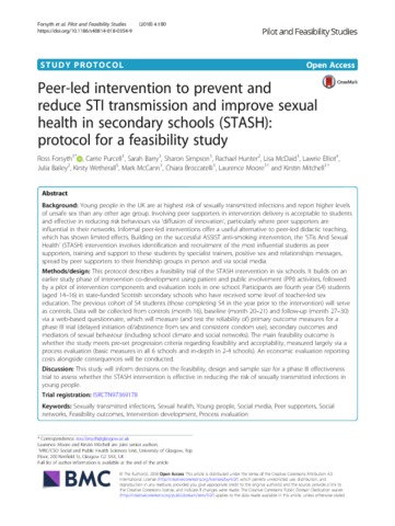 Peer-led intervention to prevent and reduce STI transmission and improve sexual health in secondary schools (STASH): protocol for a feasibility study.