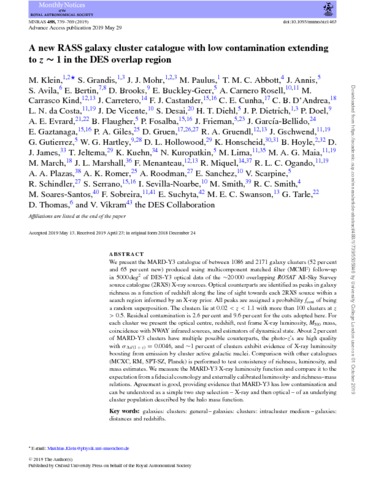 Brooks_A new RASS galaxy cluster catalogue with low contamination extending to z ∼ to 1 in the DES overlap region_VoR.pdf - Published Version Download (9MB) | Preview |