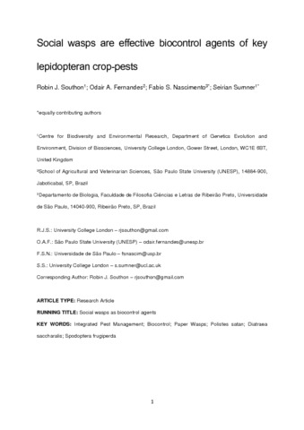 Title: | Social wasps are effective biocontrol agents of key lepidopteran crop pests |