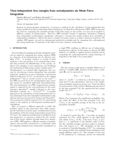 | Title: | Time-independent free energies from metadynamics via Mean Force Integration |