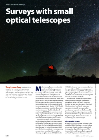 Tony Lynas-Gray reviews the history of surveys with small telescopes and explains why they are still vital to support the work of much larger telescopes.