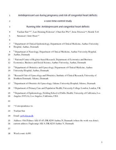 Title: | Antidepressant use during pregnancy and risk of congenital heart defects: A case-time-control study |