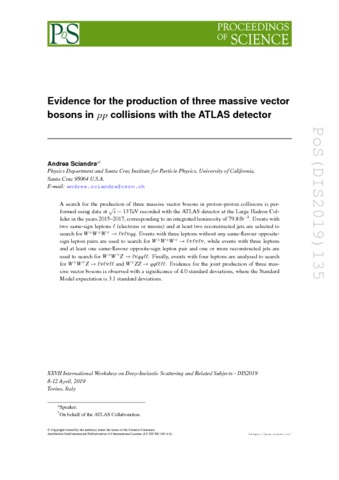 Title: | Evidence for the production of three massive vector bosons in pp collisions with the ATLAS detector |
