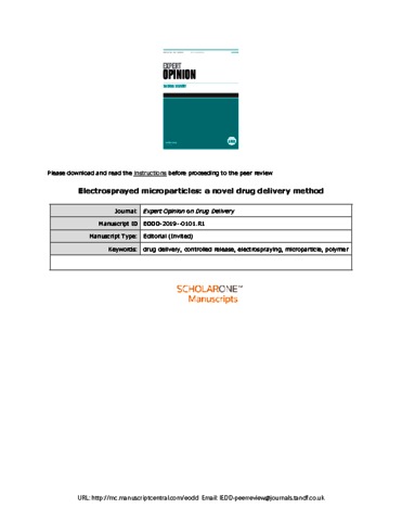 | Title: | Electrosprayed microparticles: a novel drug delivery method |