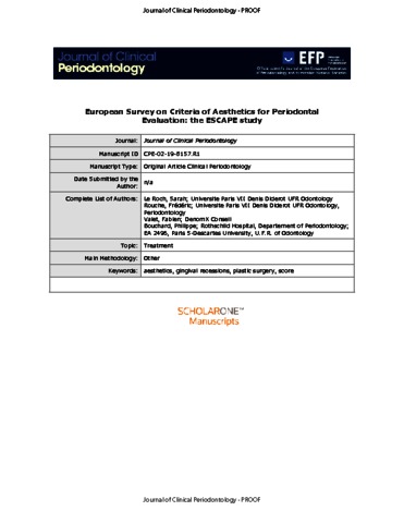 European survey on criteria of aesthetics for periodontal evaluation: The ESCAPE study.