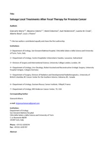 Title: | Salvage Local Treatments After Focal Therapy for Prostate Cancer |