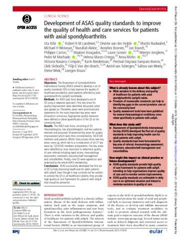 Title: | Development of ASAS quality standards to improve the quality of health and care services for patients with axial spondyloarthritis |