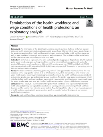 Title: | Feminisation of the health workforce and wage conditions of health professions: an exploratory analysis |