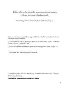 Title: | Robust effects of predictability across experimental contexts: Evidence from event-related potentials |