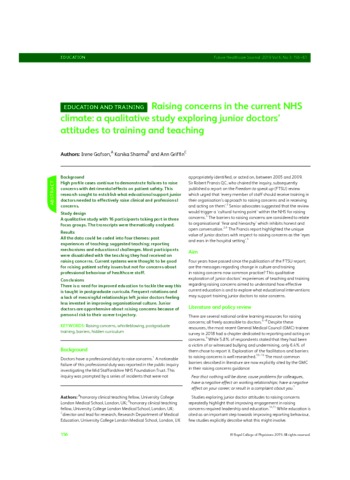 Title: | Raising concerns in the current NHS climate: a qualitative study exploring junior doctors’ attitudes to training and teaching |