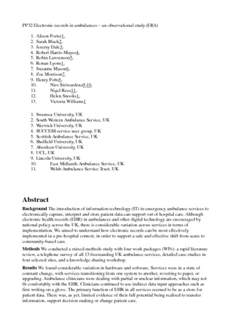 Title: | PP32 Electronic records in ambulances – an observational study (ERA) |