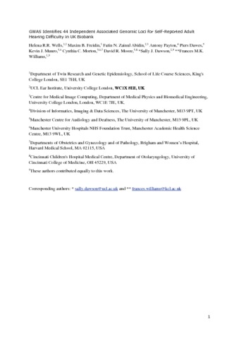 Title: | GWAS Identifies 44 Independent Associated Genomic Loci for Self-Reported Adult Hearing Difficulty in UK Biobank |