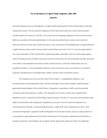 Sim Sim, 'The United States in an Age of Global Integration, 1865-1897', submitted.pdf - Accepted Version Download (849kB) | Preview |