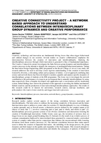 Title: | Creative connectivity project – A network based approach to understand correlations between interdisciplinary group dynamics and creative performance |