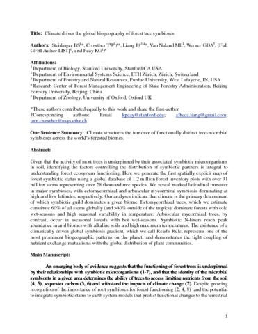Title: | Climatic controls of decomposition drive the global biogeography of forest-tree symbioses |