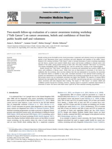 Two-month follow-up evaluation of a cancer awareness training workshop (Talk Cancer) on cancer awareness, beliefs and confid.pdf - Published Version Download (248kB) | Preview |