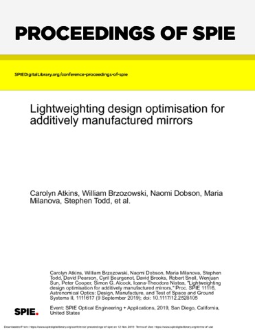 | Title: | Lightweighting design optimisation for additively manufactured mirrors |