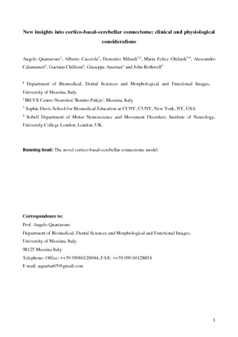 New insights into cortico-basal-cerebellar connectome: clinical and physiological considerations.
