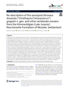 Title: | Re-description of the sauropod dinosaur Amanzia („Ornithopsis/Cetiosauriscus“) greppini n. gen. and other vertebrate remains from the Kimmeridgian (Late Jurassic) Reuchenette Formation of Moutier, Switzerland |