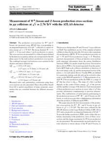 Title: | Measurement of W^{±} -boson and Z-boson production cross-sections in pp collisions at √s = 2.76 TeV with the ATLAS detector |
