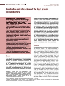 Title: | Localisation and interactions of the Vipp1 protein in cyanobacteria |